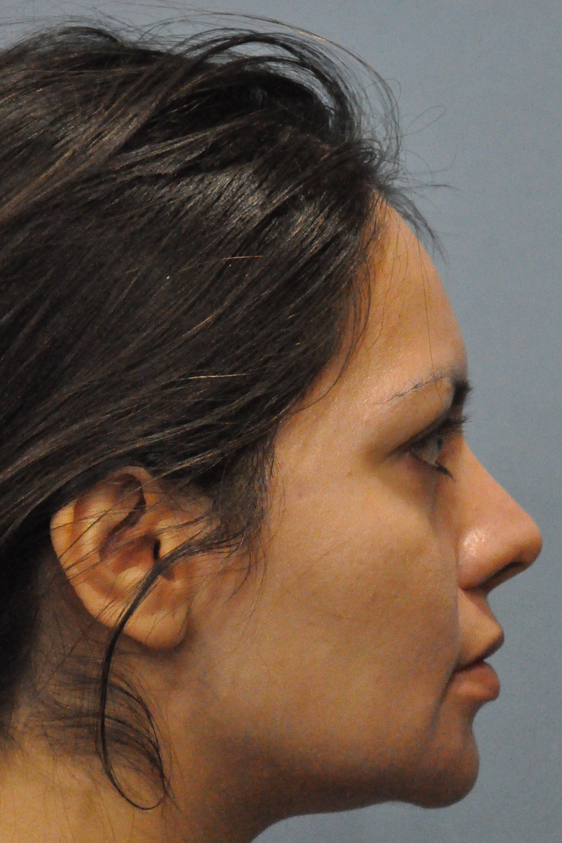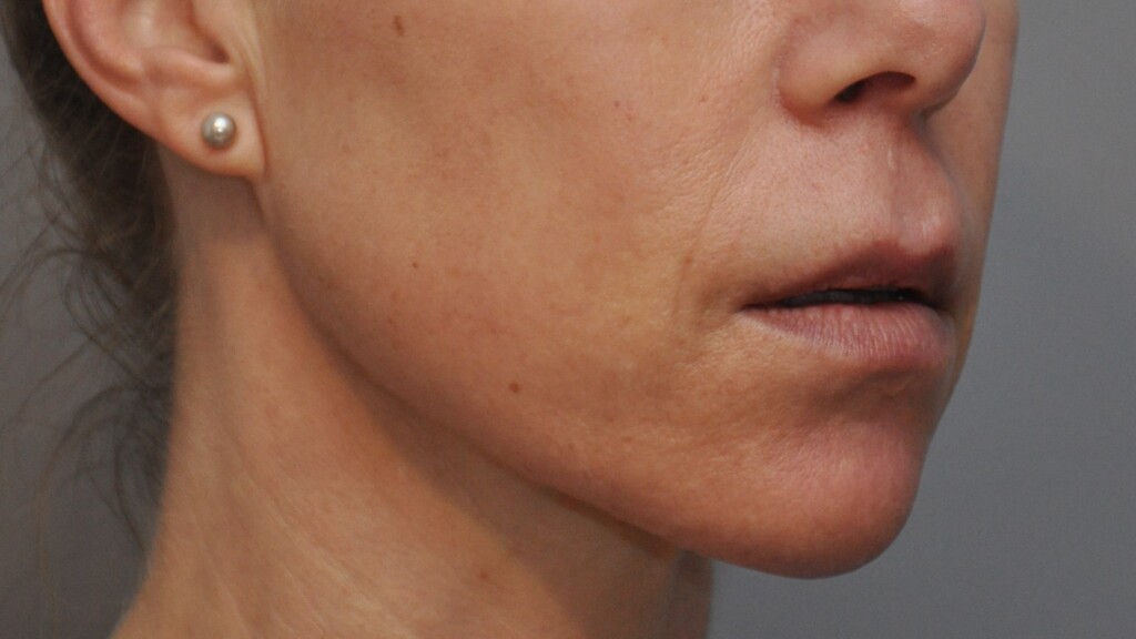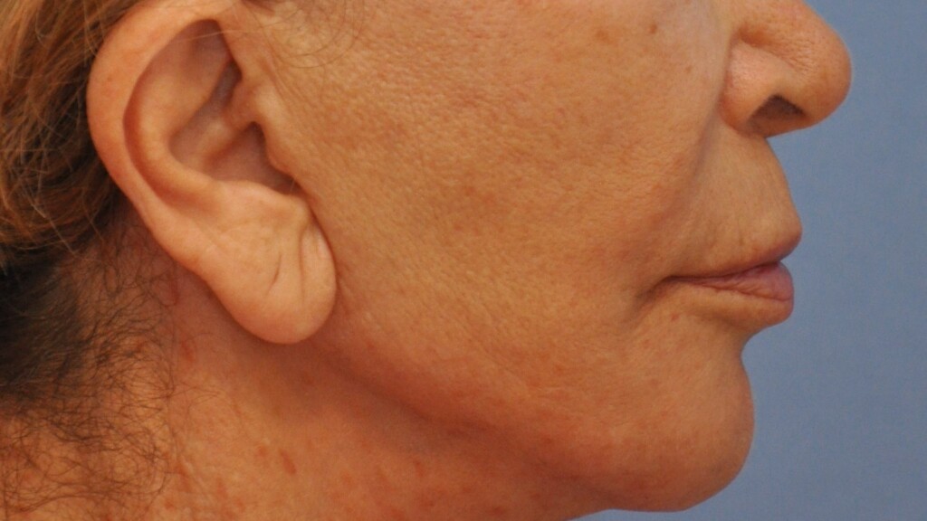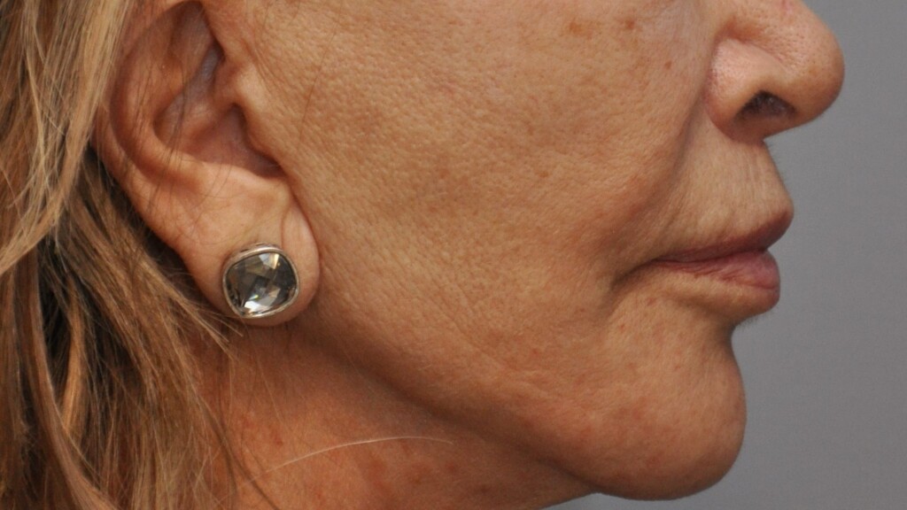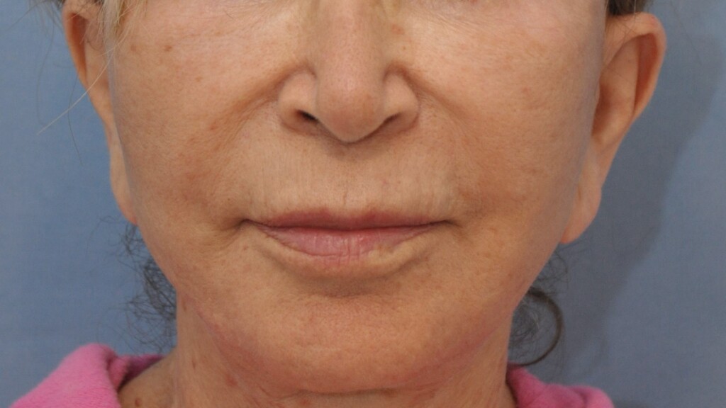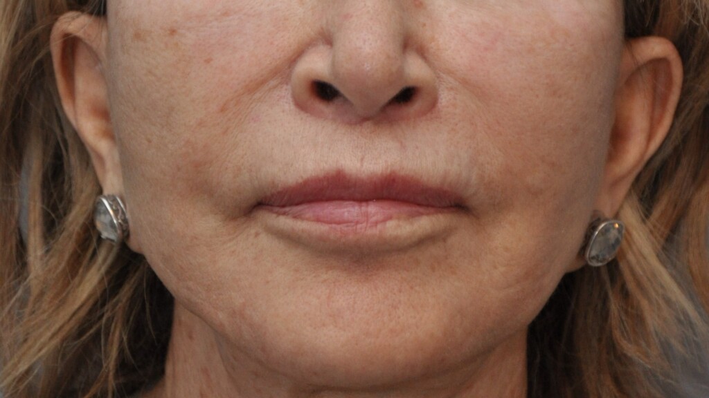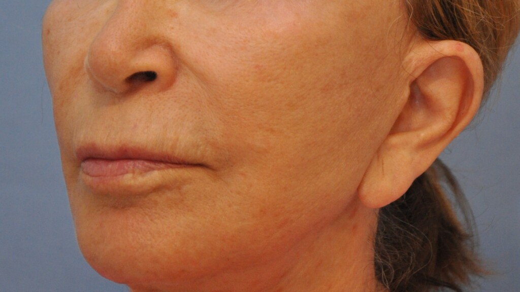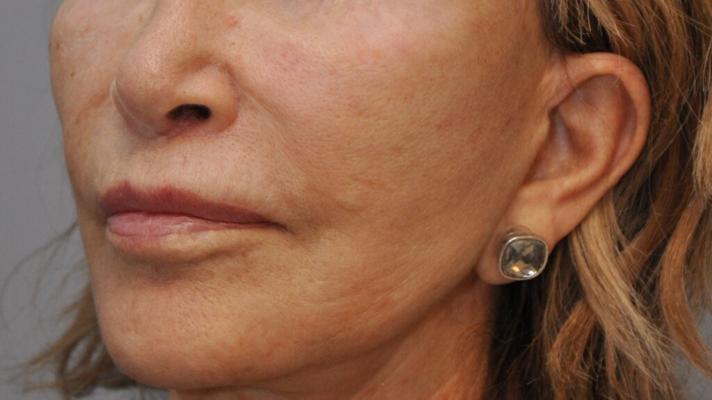 This lovely patient had a Radialift 6 months ago. To appreciate the nuances, you would need to notice how the hairline advancement helped restore the femininity and the lip lift helped to regain the sensuality of her features. She had a tripartite lip lift which maintains the proportions of her upper lip for the most natural outcome. The close up view is to demonstrate the hairline incision for the advancement and brow repositioning.