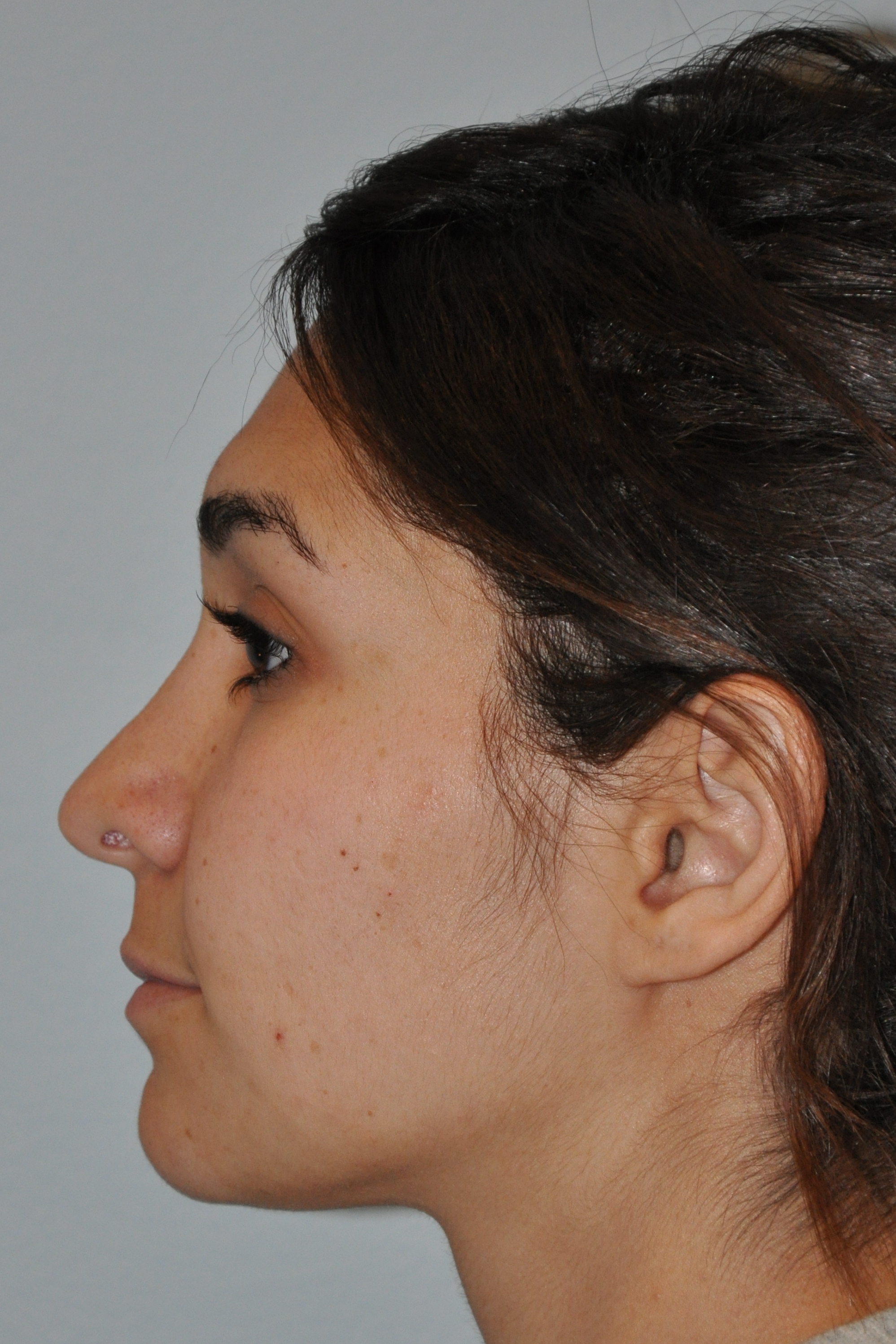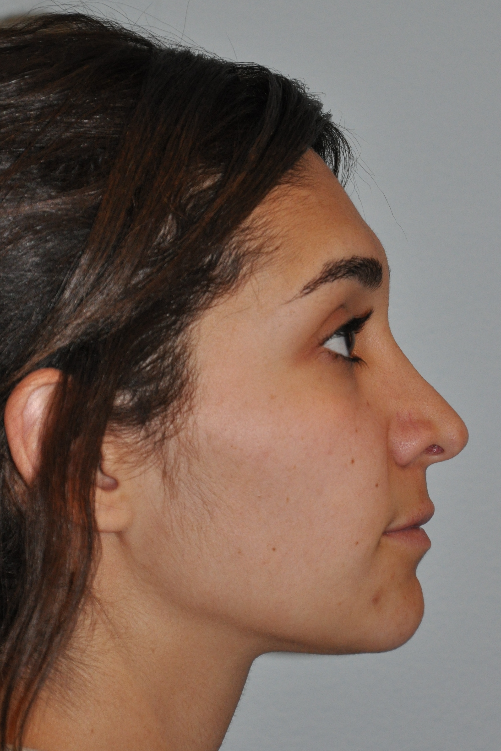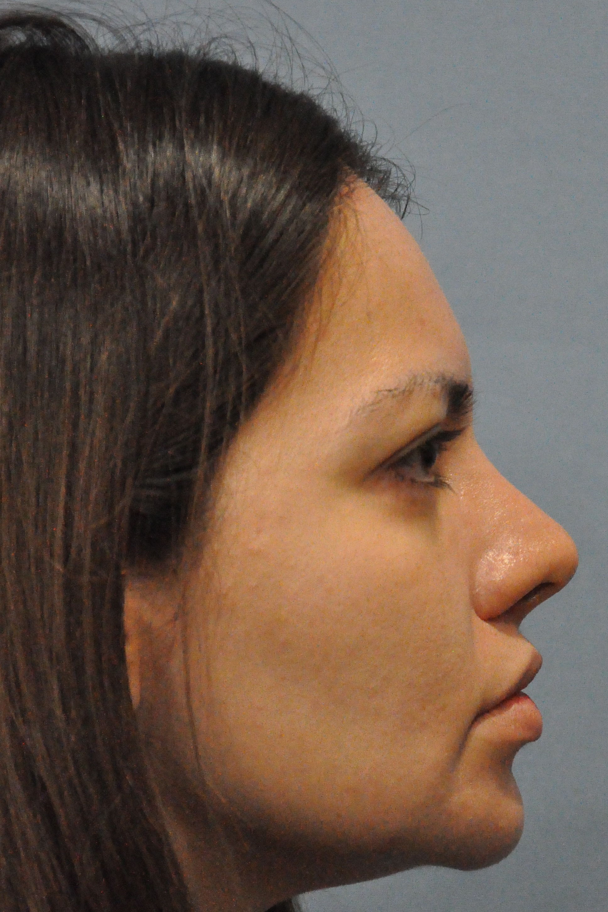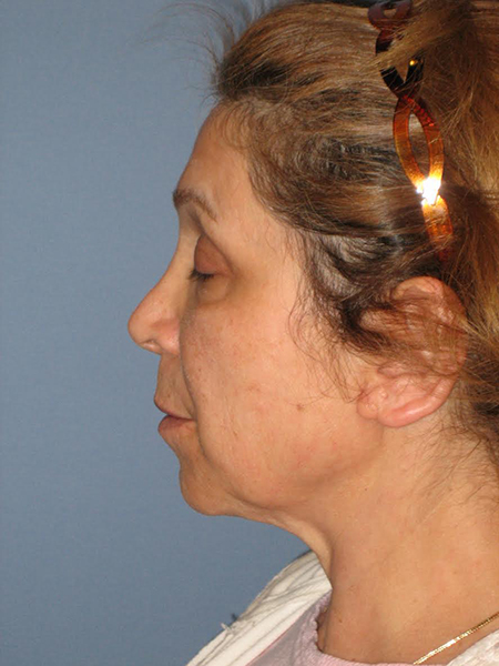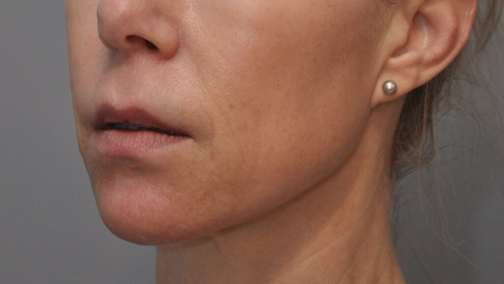 This lovely patient had a Radialift 6 months ago. To appreciate the nuances, you would need to notice how the hairline advancement helped restore the femininity and the lip lift helped to regain the sensuality of her features. She had a tripartite lip lift which maintains the proportions of her upper lip for the most natural outcome. The close up view is to demonstrate the hairline incision for the advancement and brow repositioning.