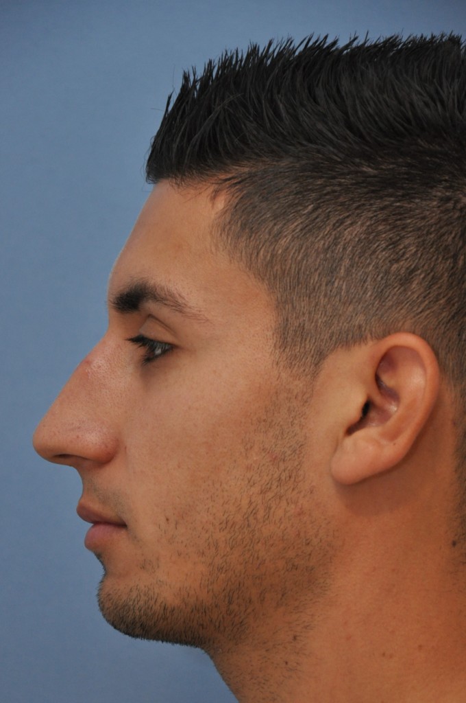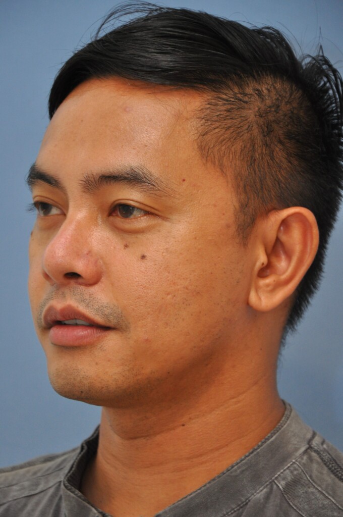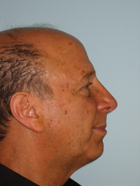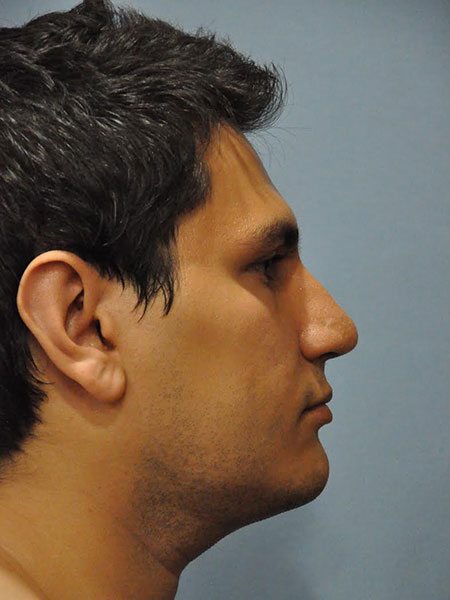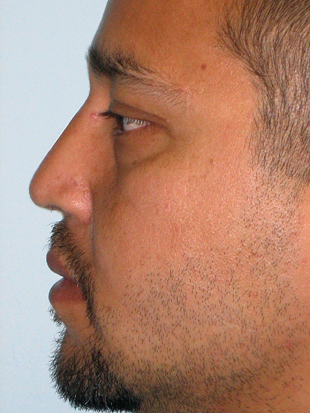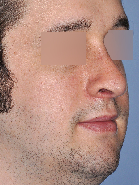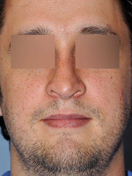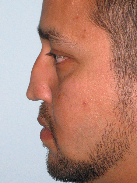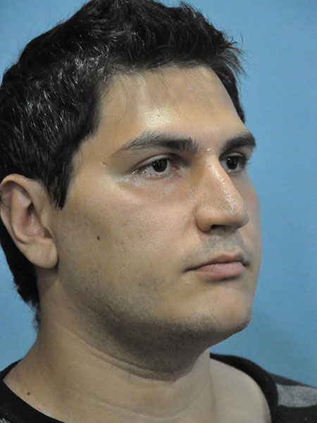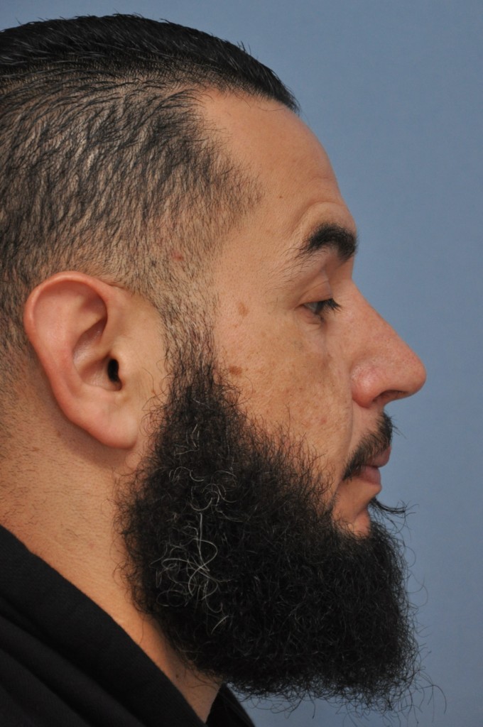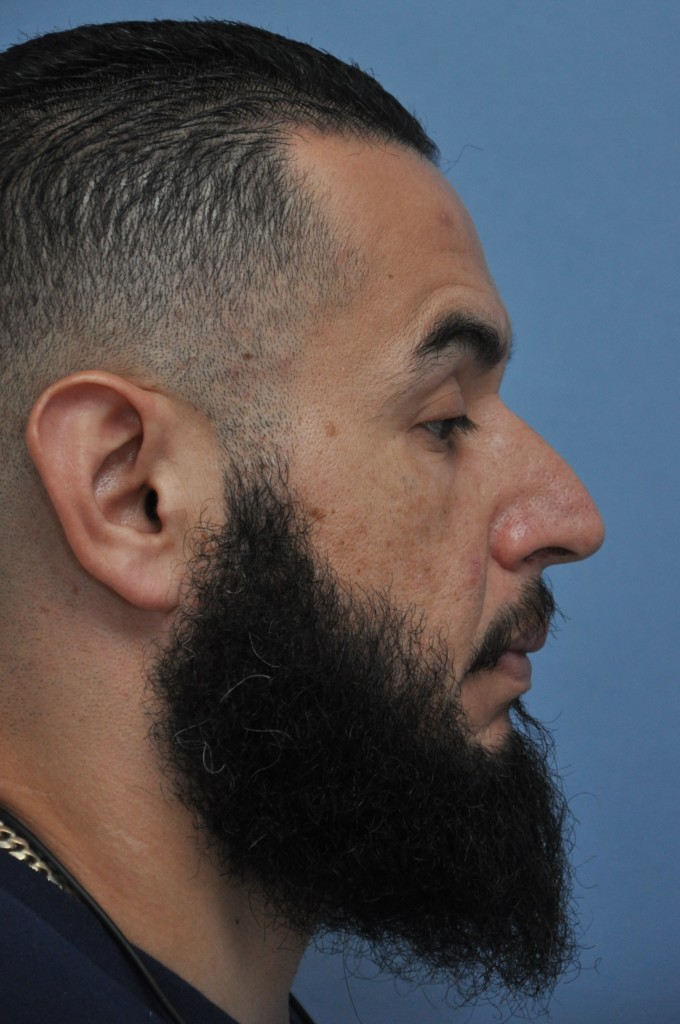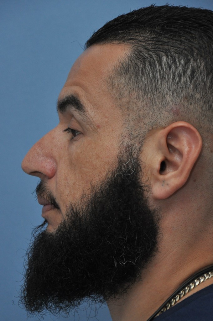 This is one of our nation's veterans. He had his nose traumatized and completely collapsed, which left him with both a functional and aesthetic deficit. He required a rib cartilage graft for a total nasal reconstruction. As a reflection of his courage, after 1 month from his procedure he already had no pain from the rib graft. He is very appreciative of our service...just as we are of his!