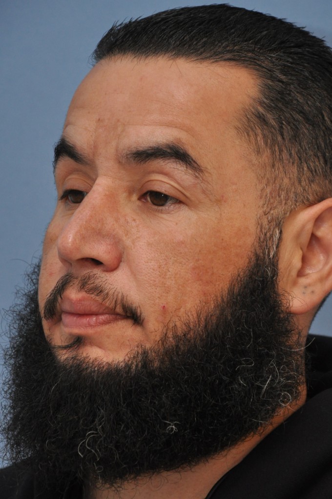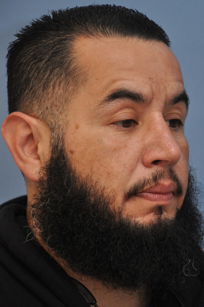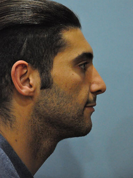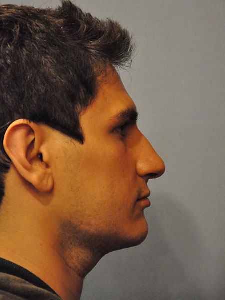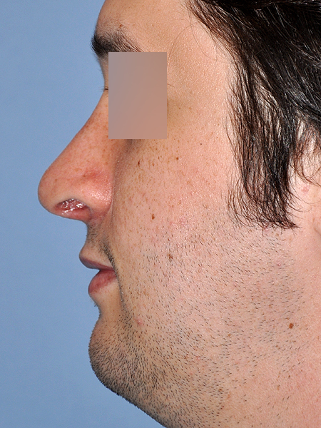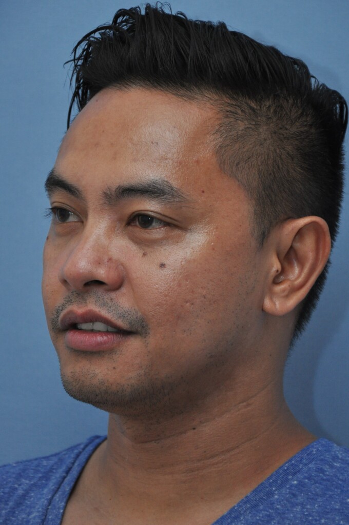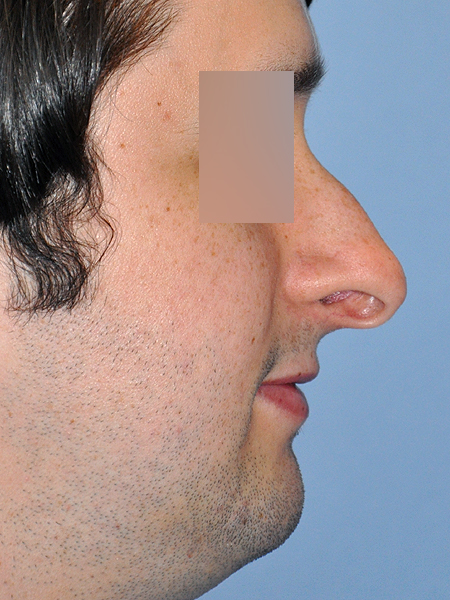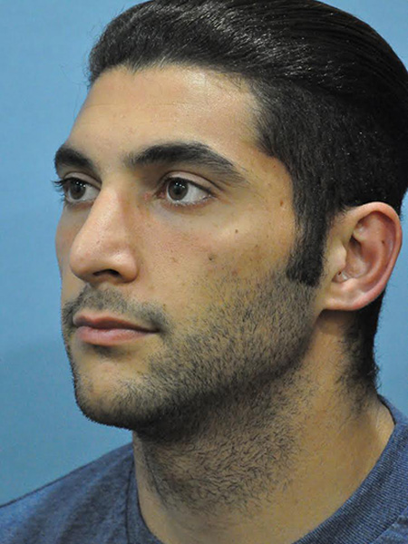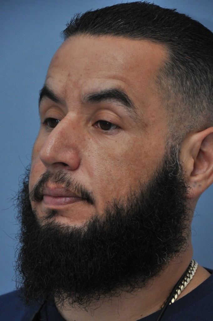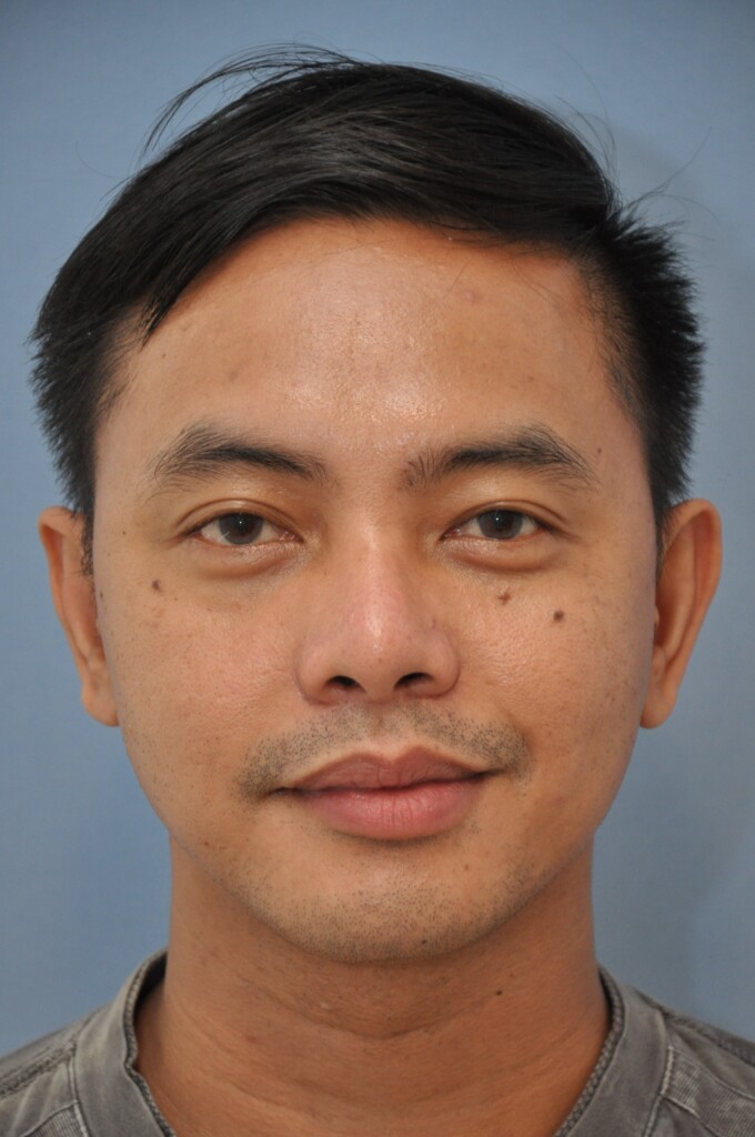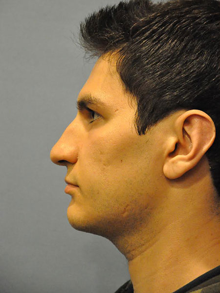 This is one of our nation's veterans. He had his nose traumatized and completely collapsed, which left him with both a functional and aesthetic deficit. He required a rib cartilage graft for a total nasal reconstruction. As a reflection of his courage, after 1 month from his procedure he already had no pain from the rib graft. He is very appreciative of our service...just as we are of his!